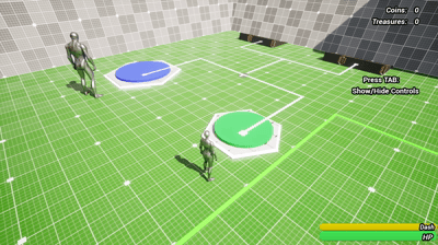 This is where the player was going to be battle using the combat character but was not finished. Past the arena is the end of the level where the player collects an amulet to win.
